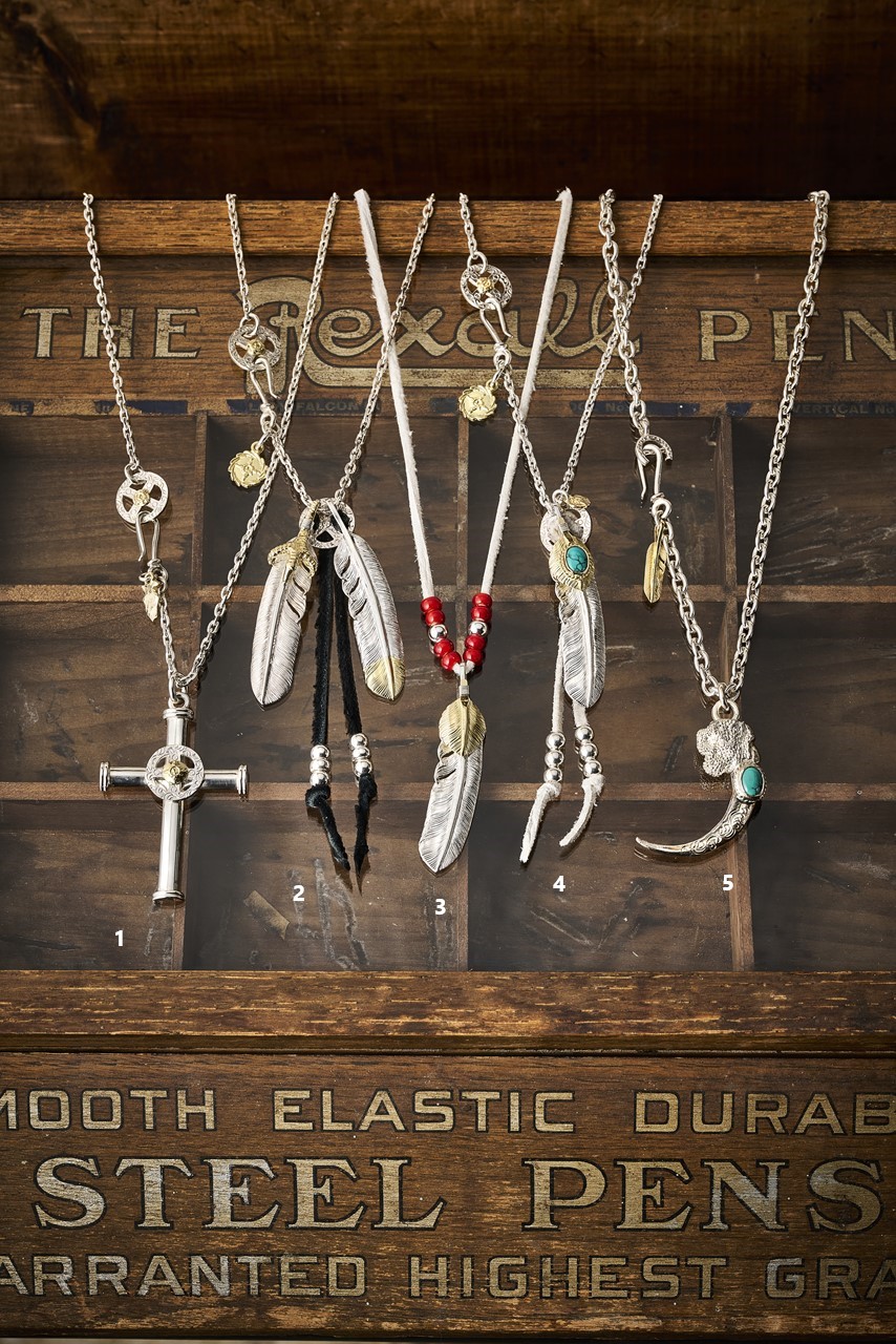 シルバーアクセリーの楽しみ方のなかでも上級者にオススメしたいのが、複数を組み合わせるコンビネーションスタイル。軸となる作品はもちろん、周りを彩る作品やその数、さらにチェーンの素材やデザインとまさに無限の組み合わせのなかから、世界にひとつだけのオリジナル作品を作り上げてみませんか?
