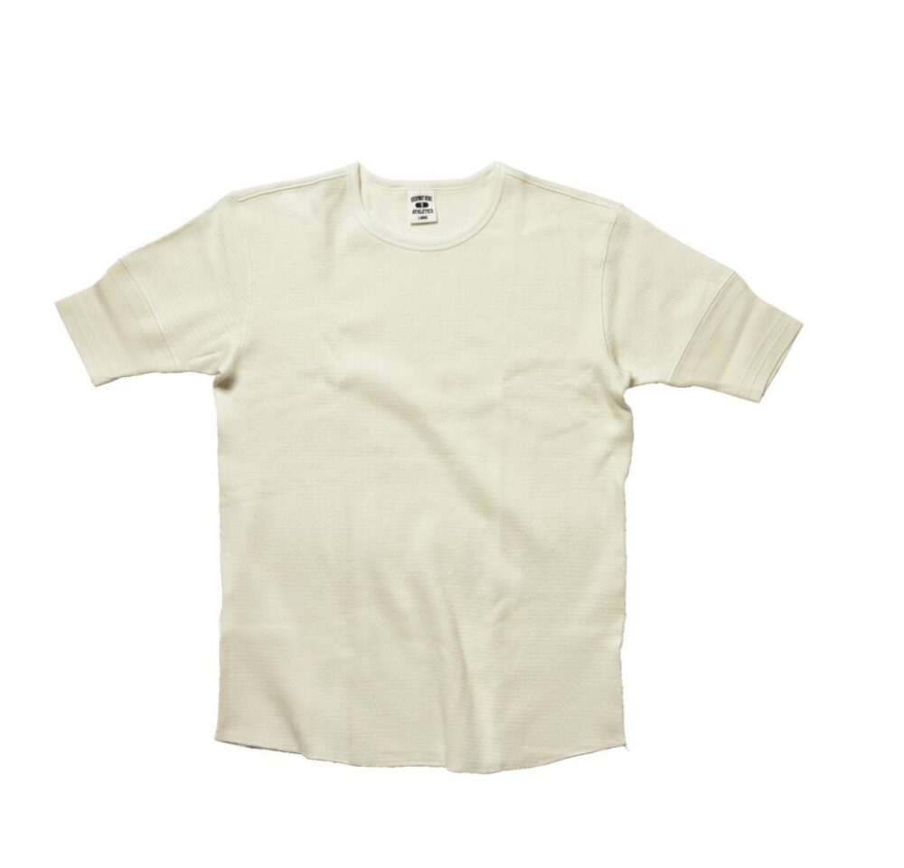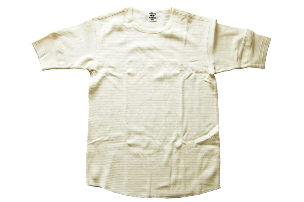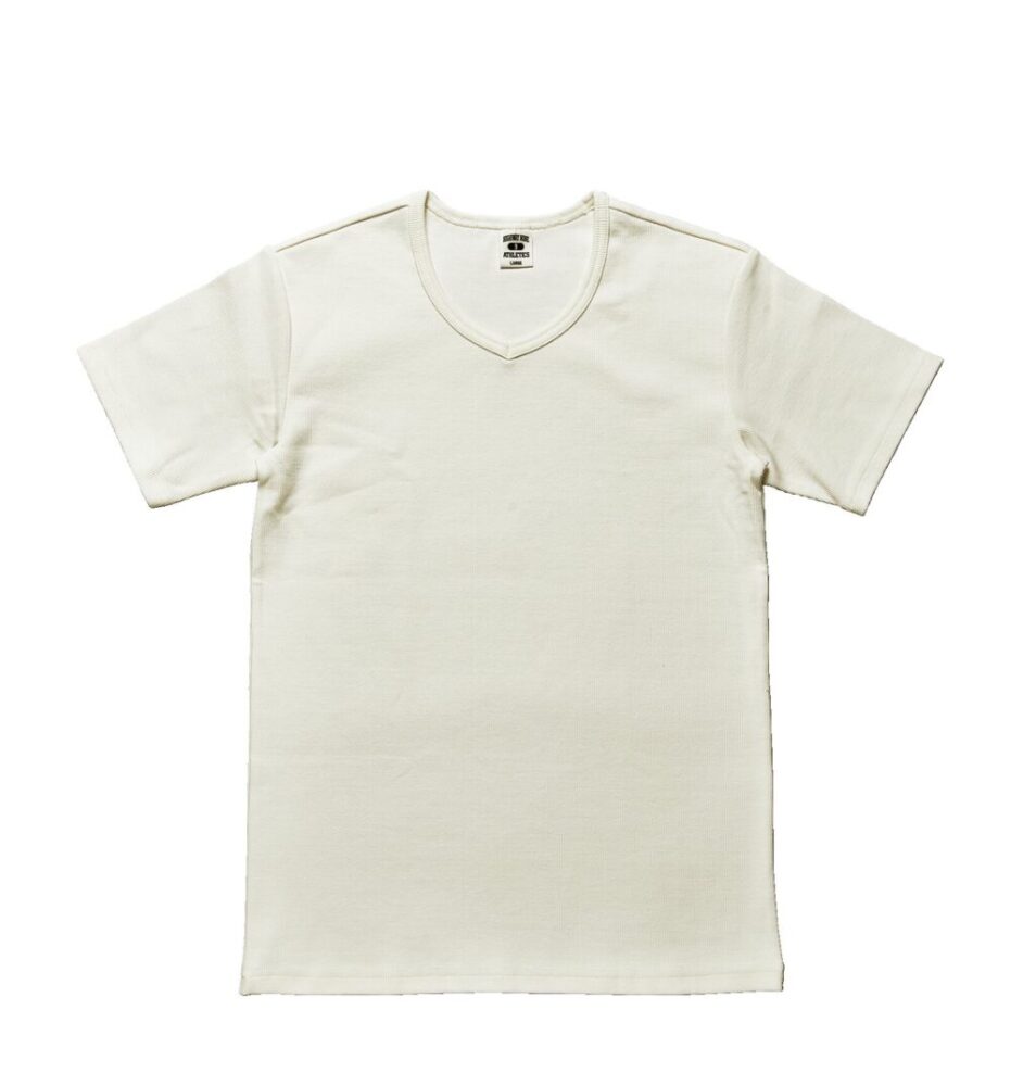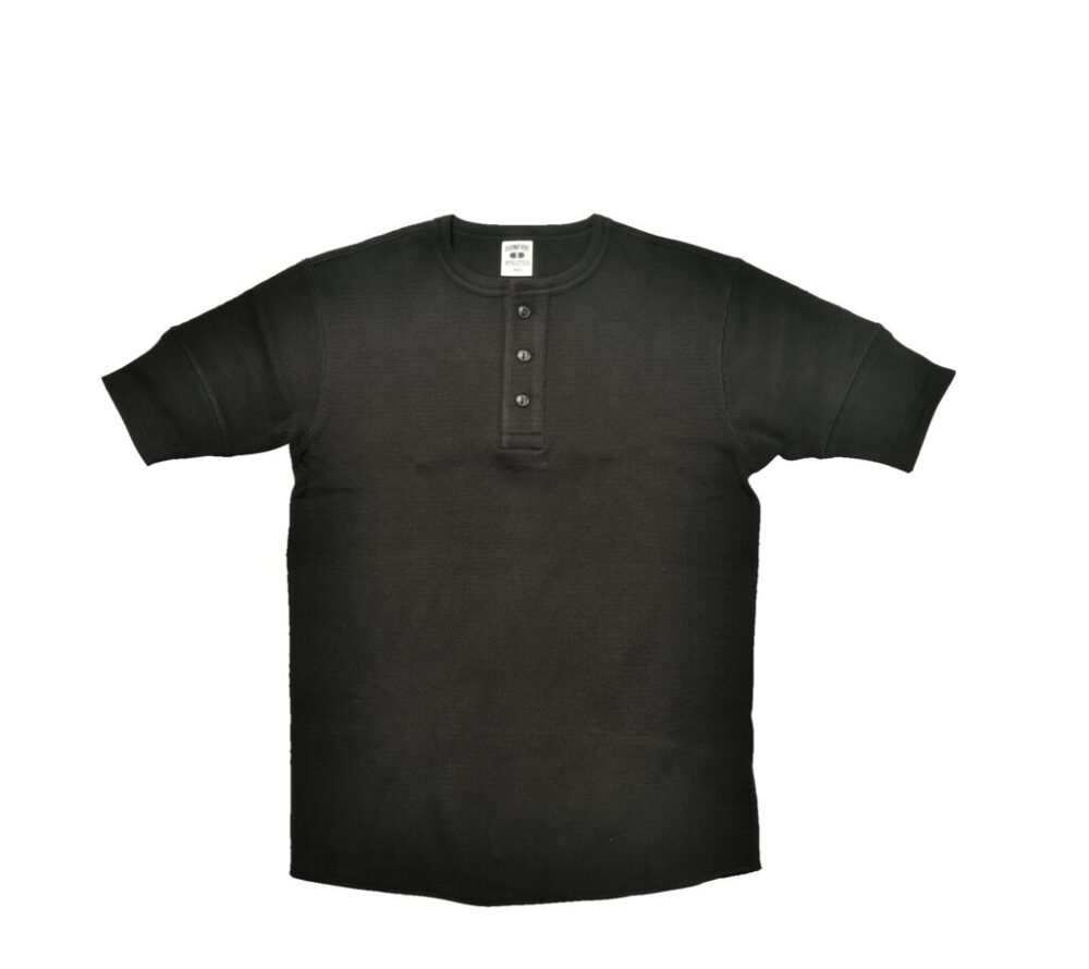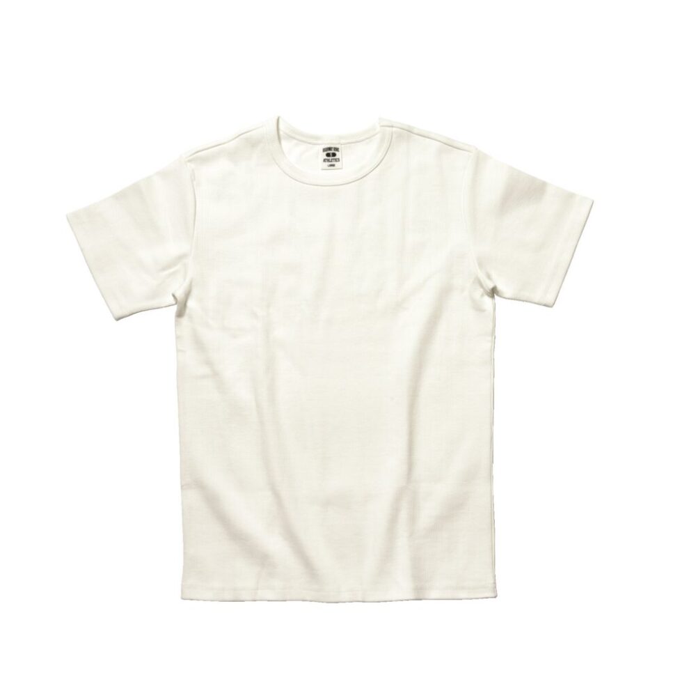 蜂の巣柄に編み込まれたサーマル素材を使用し、肌触りが非常にいいのが特徴。袖口はリブの編み立て仕様に。クルーネック、Uネック、ヘンリーネックが選べ、カラーはリブT同様の2色展開。すべて4950円