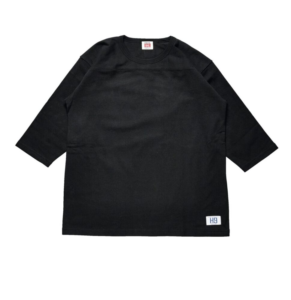 ハイウェイナインから、新たなTシャツが登場したぞ。それがこちらのフットボールTだ。こちらは通常のラインナップモデルと比べて、ざっくりとした作りになっているため、革ジャンの下に着ると、多少着丈が気になるかもしれないが、私モヒカン小川なら、このフットボールTにレザーベストを合わせることをおすすめする。袖丈もヴィンテージライクな七分袖で、ベストとの相性もバッチリなのだ。生地は10番手の糸で編み立てられたヘビーウェイトな天竺生地で、肉厚でしっかりとした着心地を楽しめる。もちろん、そのまま着てもサマになるし、デニムジャケットなどとの相性も申し分なし! カラーはホワイトとブラックの2色展開。春のファッションを思い切り楽しみたいなら、2色ともゲットしたほうがいいかも! 5940円