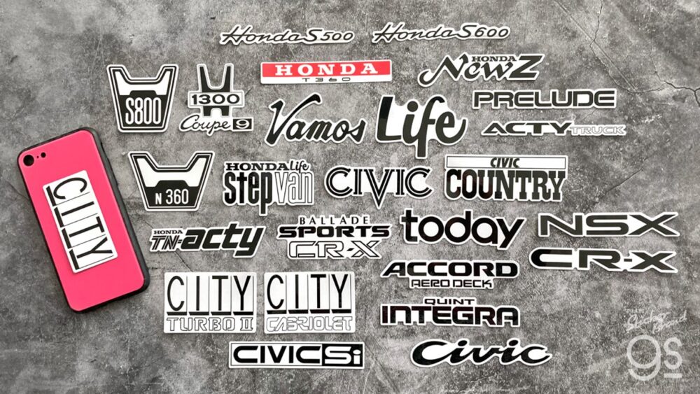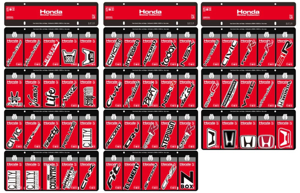 Honda車の象徴である『H』マークはもちろん、歴代のエンブレムをモチーフにしたステッカーを収録。エンブレムは年代ごとに大きさや比率が異なり、見る者に当時の記憶を呼び起こさせる。そこには世界的な視点とHondaのユニークな発想、そして情熱が込められていることは、ファンにとって言うまでもない。