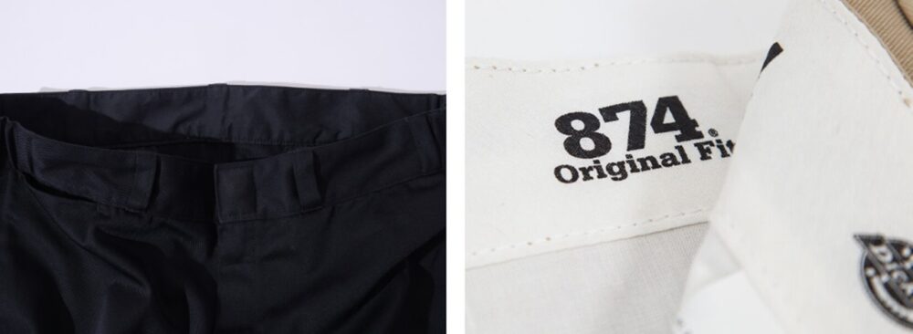 ウエスト裏のスレキ部分も一工夫。通常は“874”の文字が羅列された柄だが、今回は無地に変更し、よりミニマルで洗練された印象へと整えている。