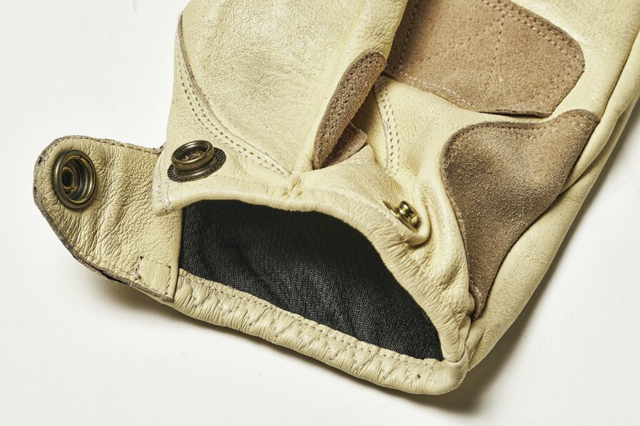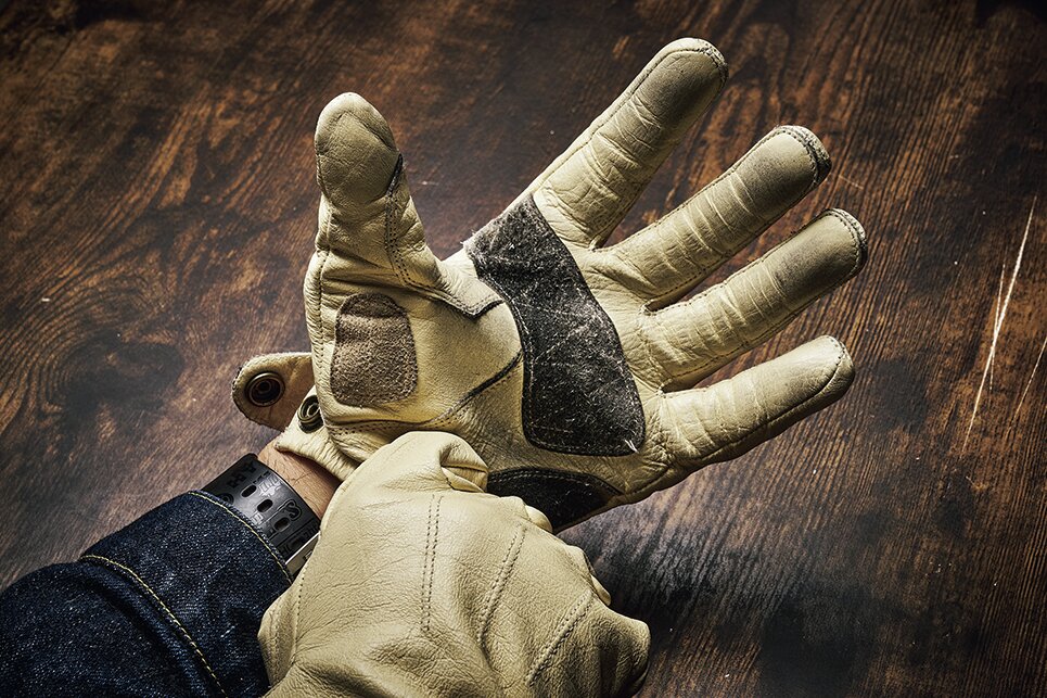 早速足を運び良さげなものがないかと店内を物色。そして見つけたのが、オイルの汚れがついたらかっこよくエイジングしそうな白色のグローブでした。レザーアイテムは使い込んでいくとラギッド感が出てかっこよくなるんですよね。実際、革馴染みもよく使い始めから着用感がいい。バイクに乗るのが楽しくなるとともに、通勤時間は往復で一時間以上の短縮。自分の時間も増え、お酒を飲む機会も減り、朝も快調に起きれる。もう良い事づくしです。