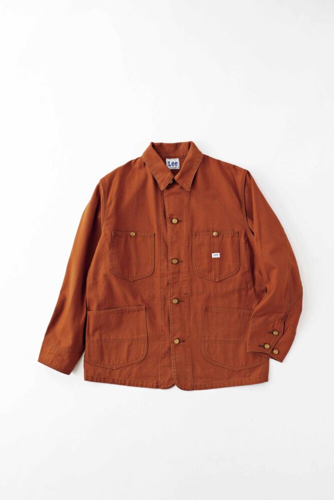 個人的に「ダック地といえばブラウン」というイメージがあり、この「リー」の一着を見た瞬間に「これだ!」と思いました。世界屈指のワークウエアブランドとして名を馳せ、映画『理由なき反抗』でジェームズ・ディーンが着用したことでも知られる由緒正しきヘリテージブランドでありながら、このカバーオールはサイジングにややゆとりを持たせることで現代的なフィッティングにアップデート。