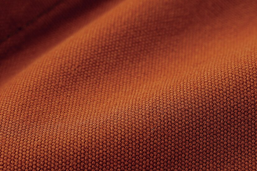 ダック地とは、太いコットン糸を高密度に平織りして作られるワークウエア向けの素材。ハリのある生地感と、高い耐久性が特徴。