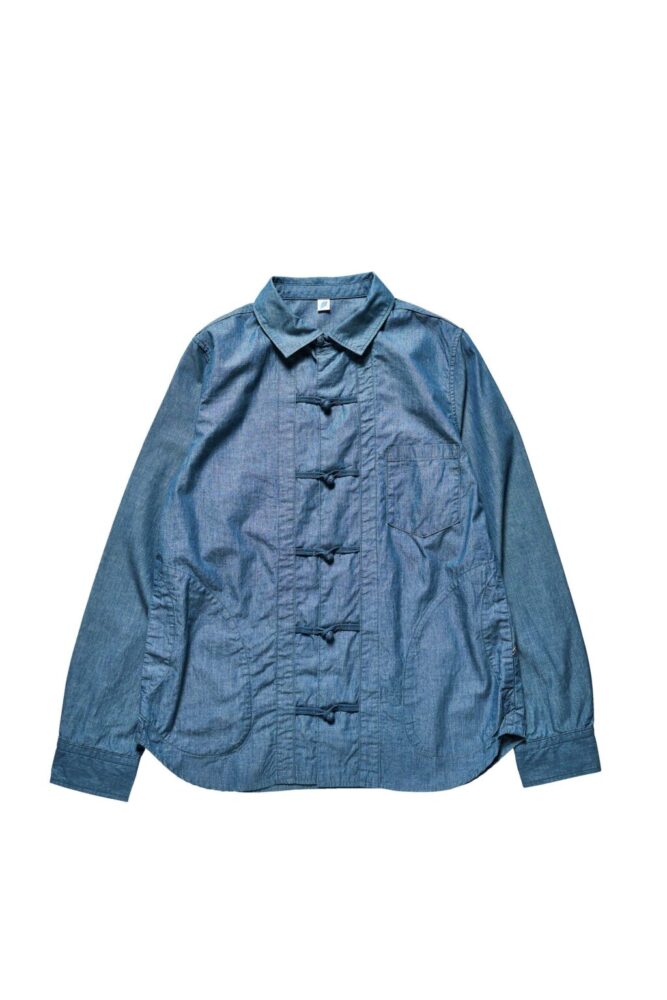 今季、ピュアブルージャパンからは、オリエンタルなノットボタンが目を引くインディゴのシャンブレーシャツが登場。シャンブレー独特の霜降り状の色ムラがあり、奥行きのある風合いが楽しめる。着心地も非常に軽く通気性も抜群なので、春はもちろん、3シーズン着用できる。サイドにはパッチポケットも設けられており、アウターを着ない季節でも重宝するはず。3万3000円