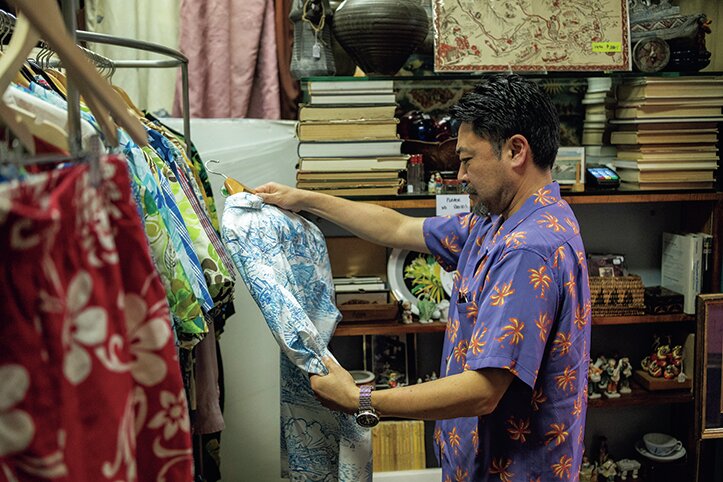 フレンドリーで知識豊富なスタッフがいるケアラケクアのアンティークショップ。中野さんも希少なヴィンテージを発見!
