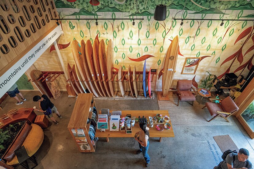 ノースショア方面にある知る人ぞ知るサーフショップの穴場。併設されたカフェでひと息つくこともできる。