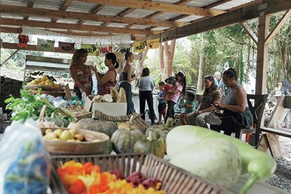 農場を運営するホヌ・ラフィタガさんとタイミ・パヒモラさん夫婦によるコミュニティサービスの一環として、物物交換マーケットなどを開催。地元のミュージシャンによるライブも楽しめる。