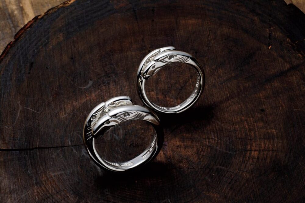 両端にイーグルヘッドがデザインされた新作のイーグルフリーリング。左2万2000円、右1万9800円 6/14発売予定