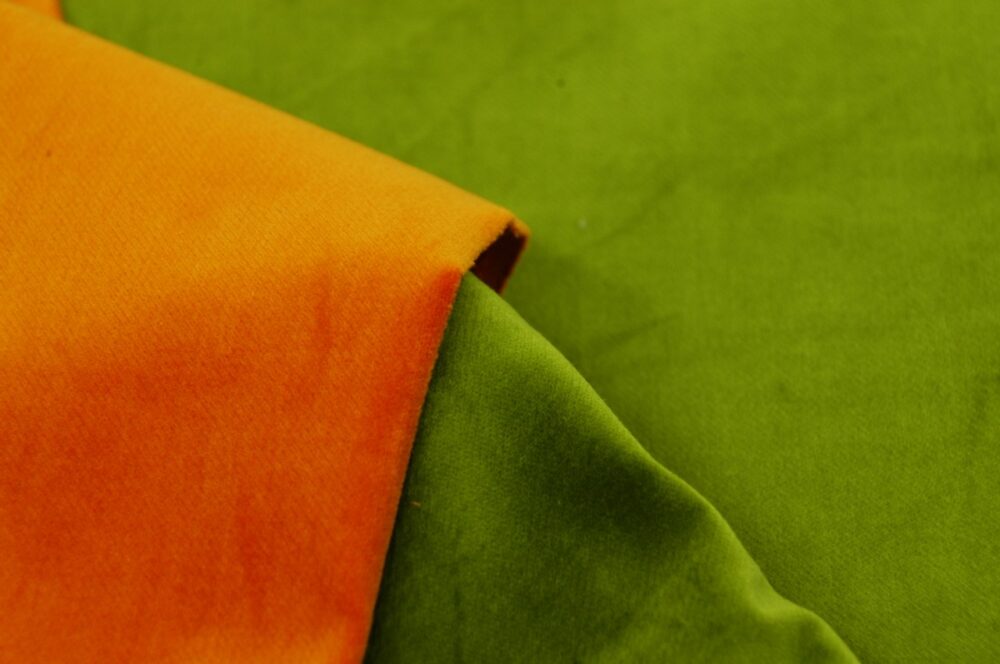 英語の「Velveteen」が語源である。表面に畝がなく、毛羽で覆われているのが特徴。高級感のある落ち着いた光沢と、深みのある色合いが魅力である。