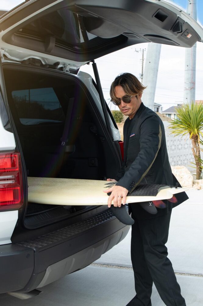 本商品は、お客様との打ち合わせや展示会から、現場確認や現地調査までマルチに着用できるスーツとして開発したものであり、設計・住宅デザインに欠かせないギミックと、カリフォルニア工務店らしい遊び心のあるデザインを反映している。