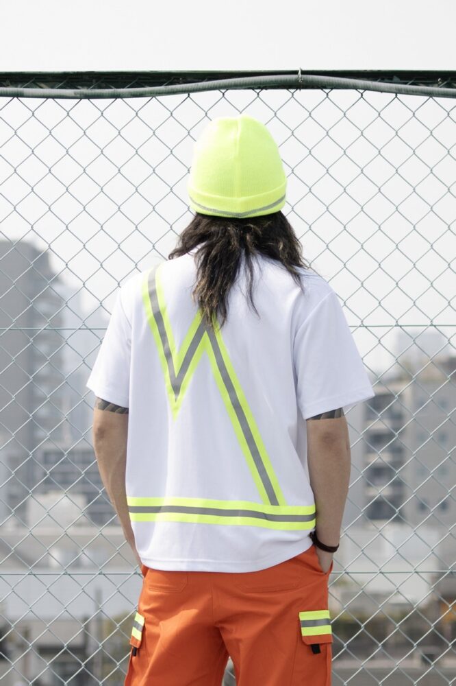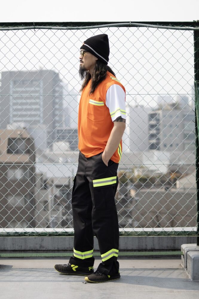 今回スタートする「UNIVERSAL OVERALL PROFESSIONAL」は、リアルワーカーのためのプロフェッショナルラインであり、歴史ある古き良きワークデザインをベースに、自然界にほぼ存在しない蛍光色や反射材などを使用し、「視認性」と「安全性」を重視したワークウェア『Hi-Vis』を現代風にアレンジして、プロフェッショナルなリアルワークスタイルを提案する。