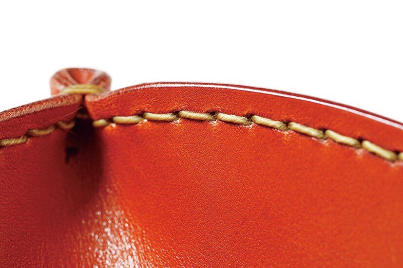 裁断から縫製まですべて手作業で行っている。一針一針しっかりと縫われているため、頑丈さはお墨付き。永く使える一品だ。