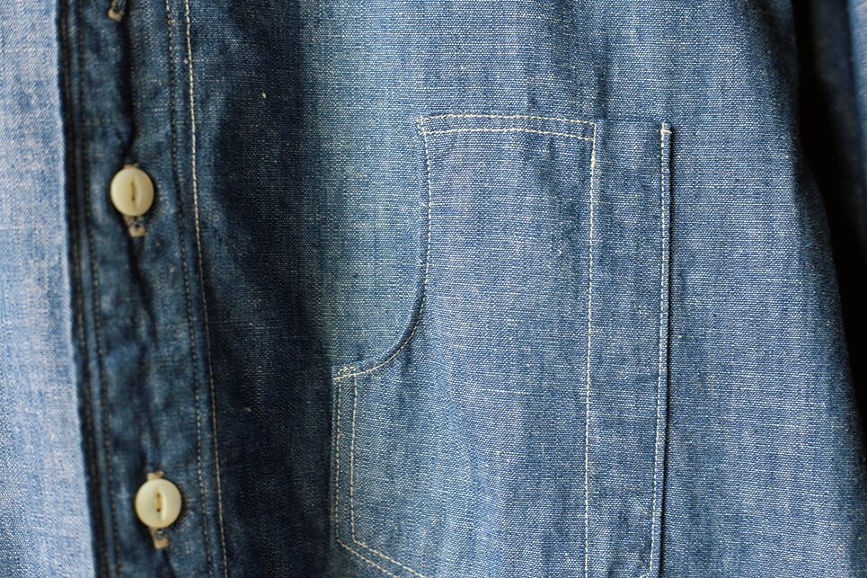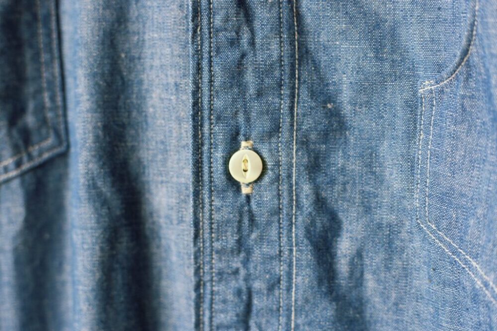 猫目ボタンは、のちのシャンブレーシャツに比べてやや小ぶりな11ミリ。天然のシェルを削り出して作った豪華なボタンだ。