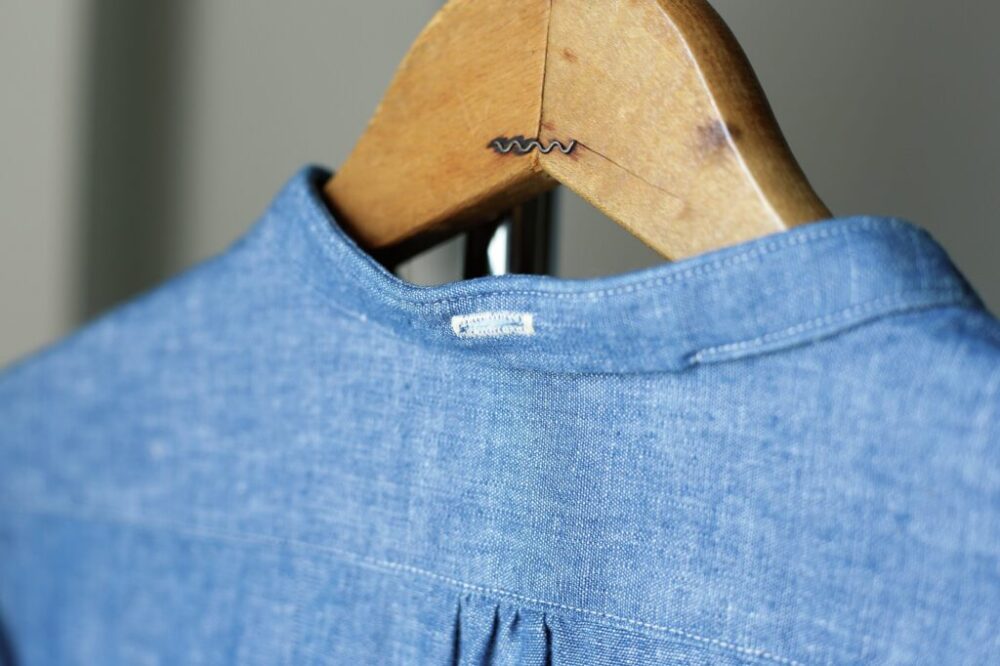 スタンドカラーには付け替え可能な襟を固定するためのボタンホールが備わり、きっと装着されないだろう襟を待っている。