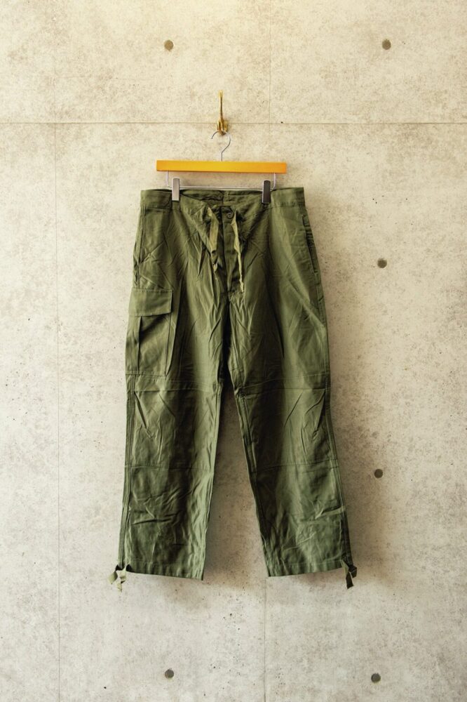 M-51の後継として1965年に正式採用されたM-65のフィールドカーゴパンツの初期型を復刻させた人気作。ジャケットではセカンドモデルまで採用されていたアルミジップを筆頭に、初期の意匠を忠実に再現。1万780円
