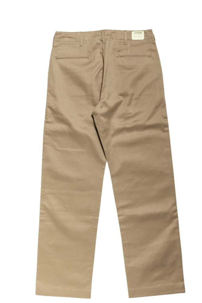 【着用アイテム】EARLY MILITARY CHINOS1942 MODEL|極めて数の少ない2本針巻き縫い仕様を再現。