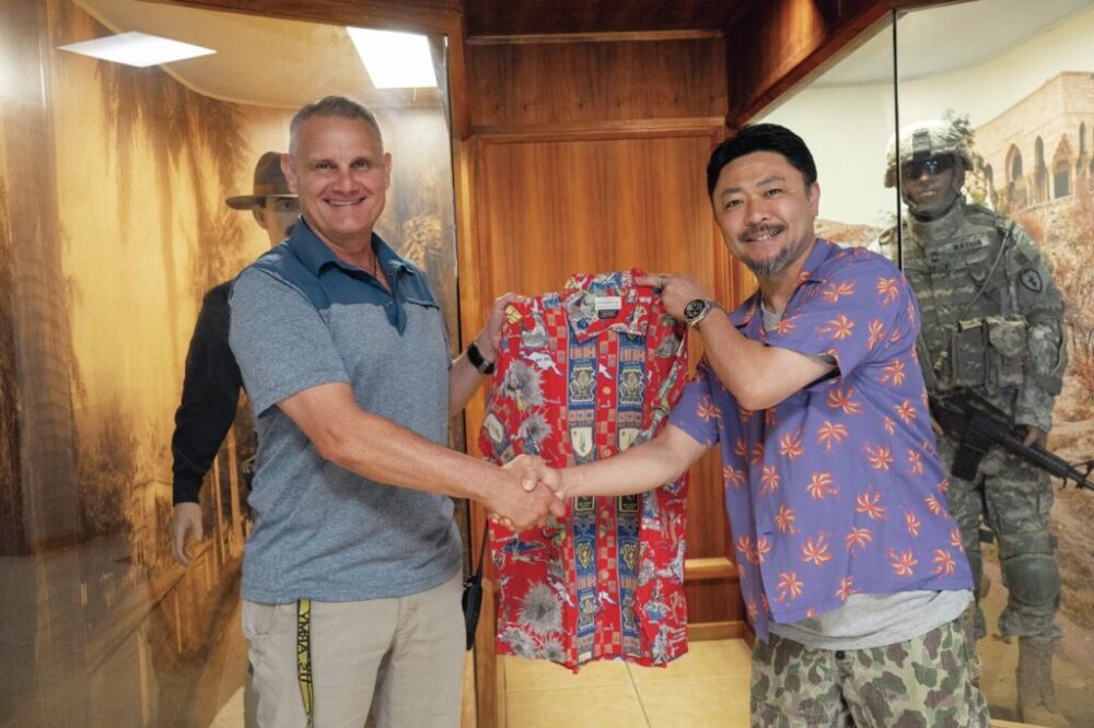 2022年に、多くのリクエストに応える形でバズリクソンズとのダブルネームにより同アロハシャツが再復刻。今回、「トロピック・ライトニング」のオフィシャルな組織が公認したアロハシャツとして、晴れて同館に寄贈する運びとなった。我々取材陣は、その歴史的な瞬間をカメラに収めることに成功したのである。