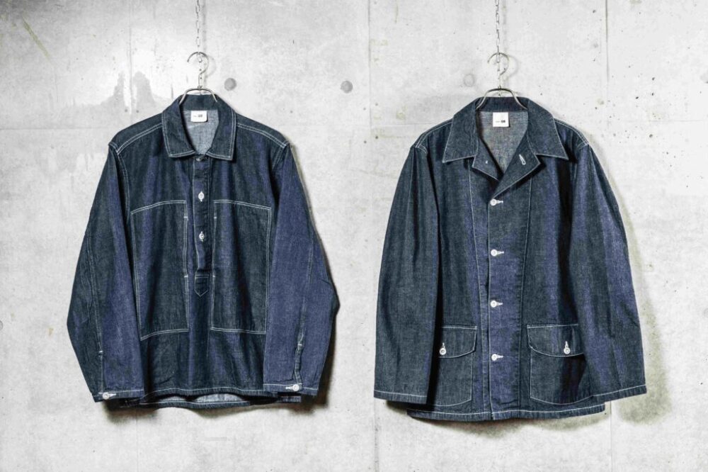 米陸軍が着用していたインディゴデニムのワークコート。このモデルより前に採用されていたのは左で紹介しているプルオーバー型だったが、着脱を容易にする目的で、1940年に前開きのスタイルに変更された。またタックインを想定していないコートスタイルのため、フラップ付きの腰ポケットにアレンジされている。(BR15302/2万4200円)