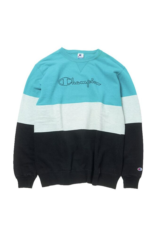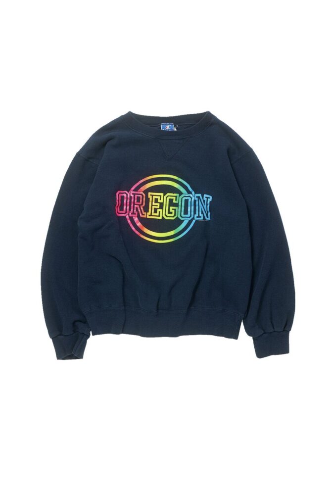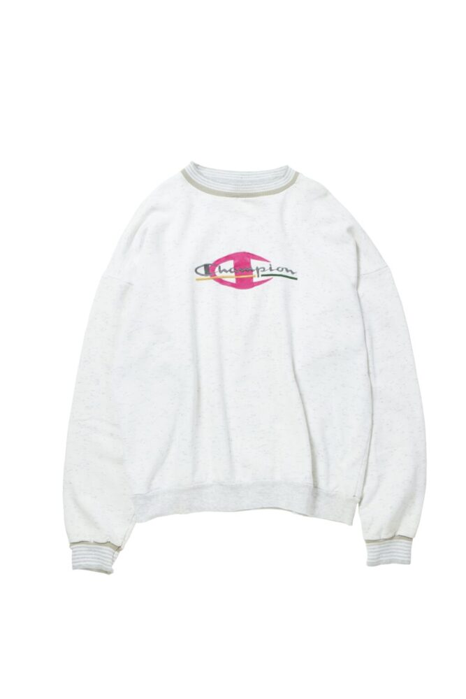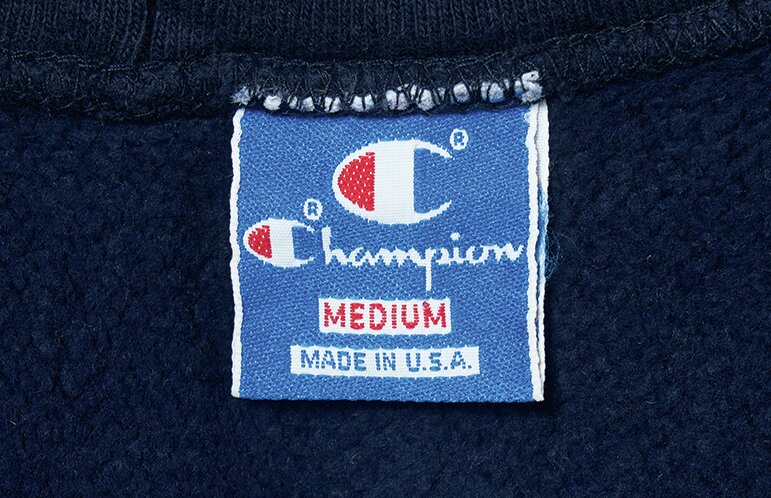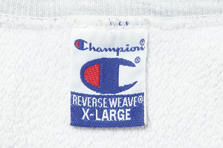 ’80年代中期頃から使用される「目付き青タグ」。この頃からは、それまでのスポーツウエアやユニフォームから少し幅が広がり、タウンウエアを意識した様々なデザインが展開されるようになった。変わり種の「チャンピオン」スウェットを探すならこのタグ期だ。