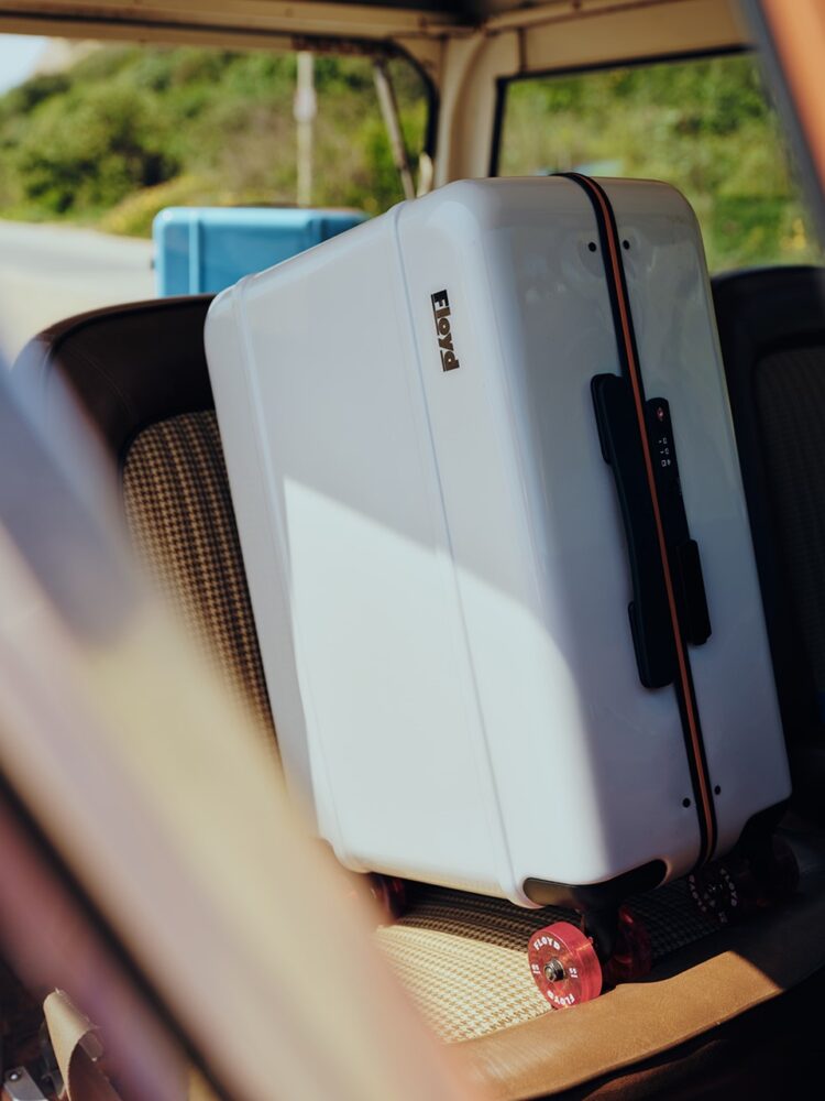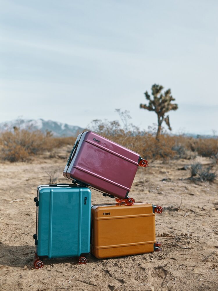 Floydのトラベルケースは、70年代のベニスビーチ・カルチャーからインスピレーションを得たポップなカラーバリエーションが特徴で、キャスター部分はスケートボードと同じウィール仕様になっている。他にはないデザインで、スケートボードのウィールを採用することで、ストレスフリーな移動を実現している。