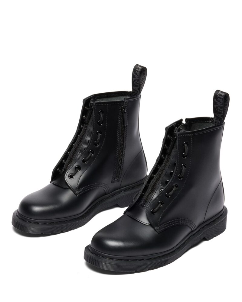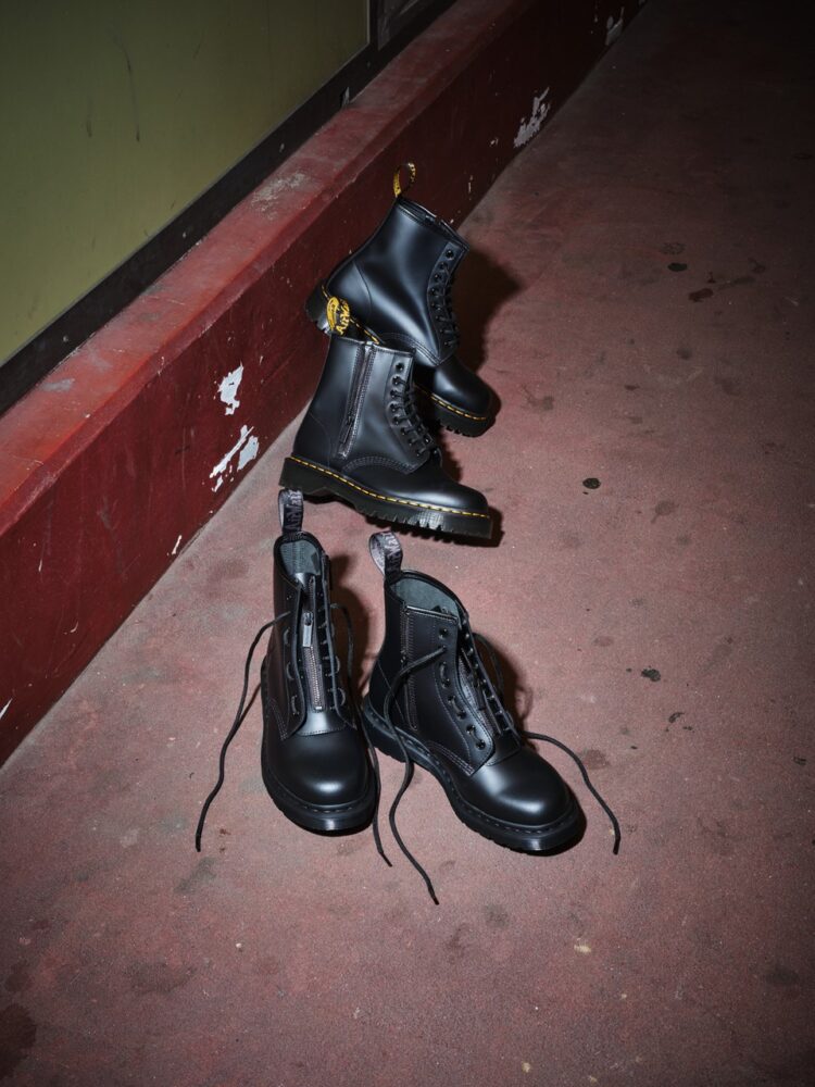 “1460 ZIP MONO”は、ジャングルブーツをインスパイアし、取り外し可能なセンタージップパーツを搭載。モノクロームのデザインを2WAYで楽しめるよう仕上げている。また、近年、Z世代から絶大な人気を誇る厚底ソールのTHE JADON BOOTは、ステッチやソール、ヒールループをモノクロームでリミックスし、“JADON MONO”はクールでプレミアムな印象を与える仕上がりとなっている。