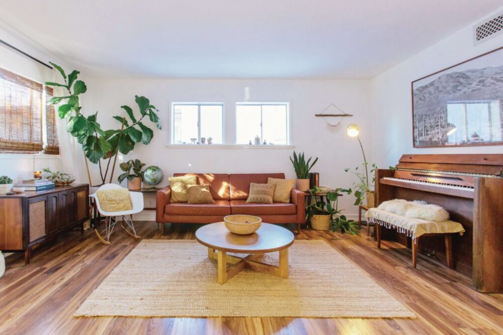 新たに敷き直したフローリングも流行りのホワイトオークではなく、ボヘミアンスタイルにマッチする色合いのものをチョイス。