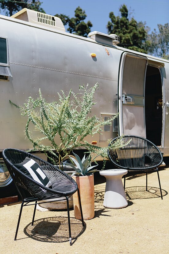 シルバーに輝く秘密基地。エアストリームとキャンプ用品。
