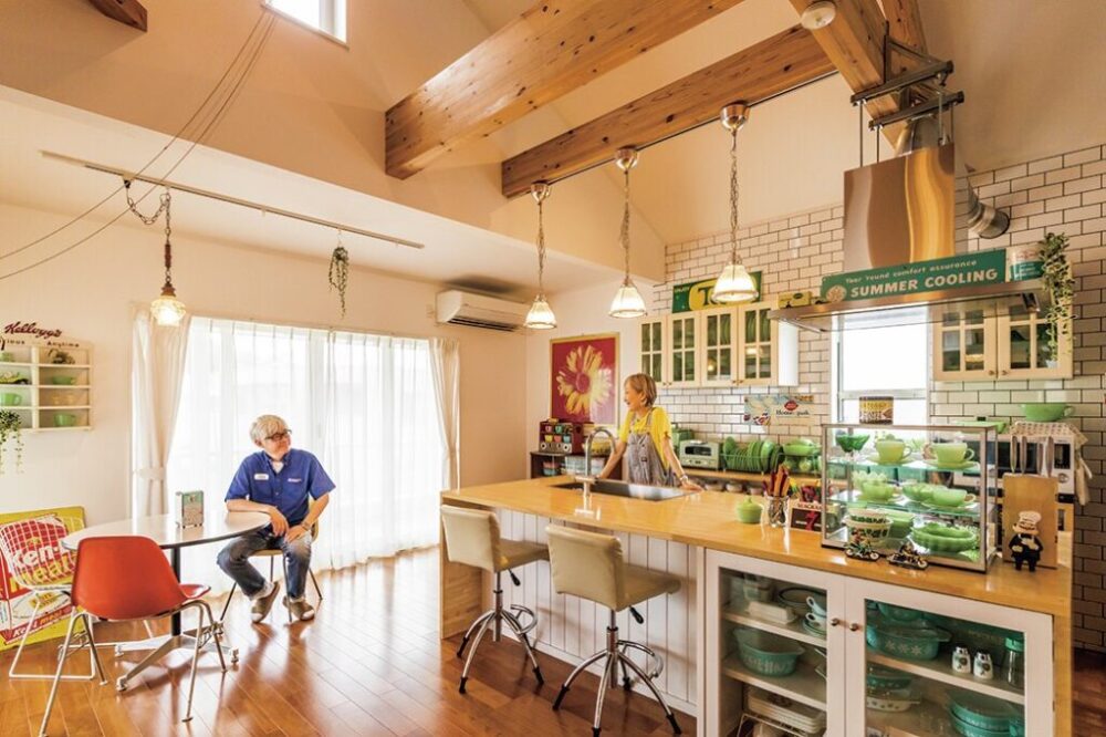 神奈川県にお住まいの三善さん夫妻は、週末を過ごすセカンドハウスとして、そしてリタイヤ後の移住先として今から8年ほど前に千葉県南房総市に土地を取得。この2F建ての建物を建てたそうだ。施工を担当したのは地元の工務店でアメリカンな家は初めてということで、間取り図や間取りをイラストを描いて説明するなど、この世界観を理解してもらうのに苦労したという。その甲斐あって理想のスタイルを実現している。