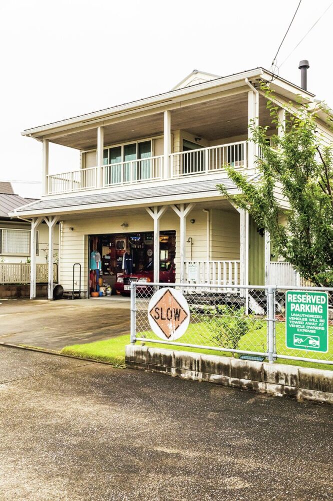 愛車を雨から守るためのガソリンスタンドを敷地に立てちゃった家。