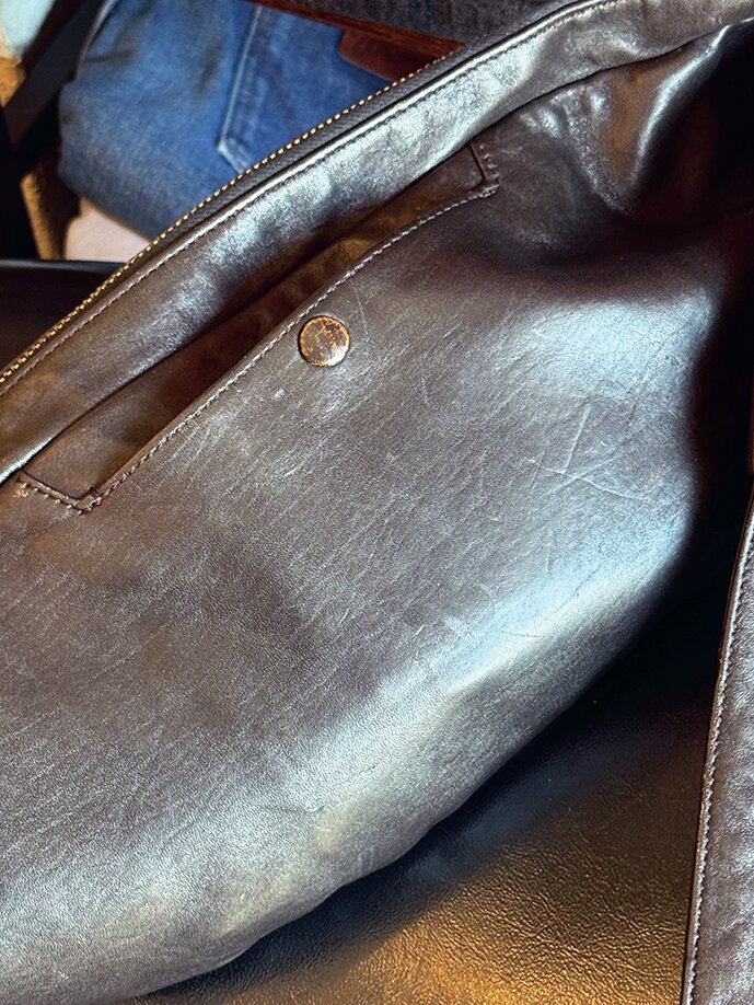細長いシェイプで身体にピッタリフィットするボディバッグ。日本産馬の原皮を国内で鞣した純日本製ホースハイドで、経年変化を楽しめる茶芯仕様。丁寧な職人の仕事に定評がある池田工芸とライトニング編集部のコラボレーションで誕生したバッグの一つで、その名も「バディバッグ」。8万4700円(CLUB-Lightning https://club-lightning.com/)