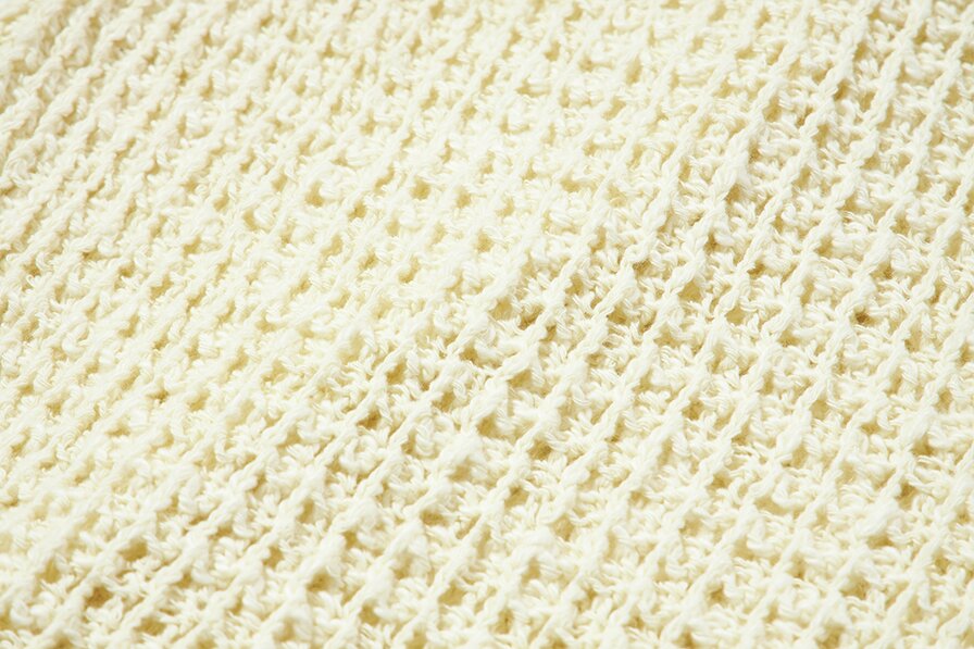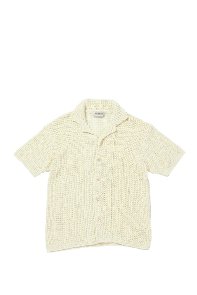 1968年の英仏合作映画『The Girl on a Motorcycle』(邦題:あの胸にもういちど)にて、名優アラン・ドロンが着用していたニットを思わせる透かし編みのニットシャツ。コットンのスラブ糸を緩く編み立てた、夏らしいリラックス感が魅力だ。
