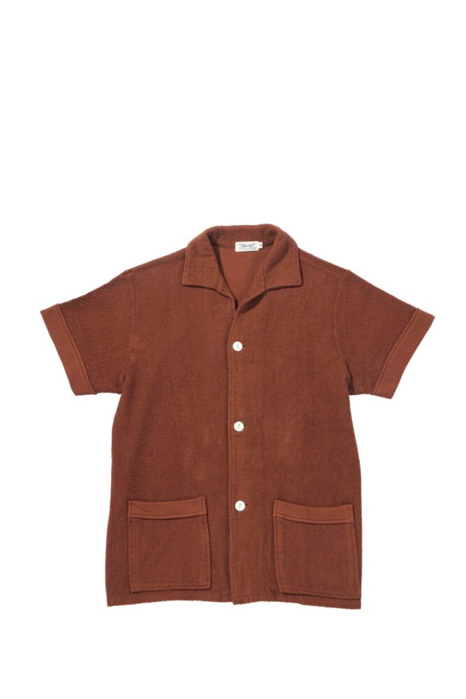 コットンパイル地を使用したビーチサイドウエアは、1950年代に散見され、海やプールから上がった後にそのまま着用できるウエアとして多くの人々に重宝された。そんなアメリカらしい合理性と、夏らしいとびきりのリラックス感を味わえるビーチシャツ。
