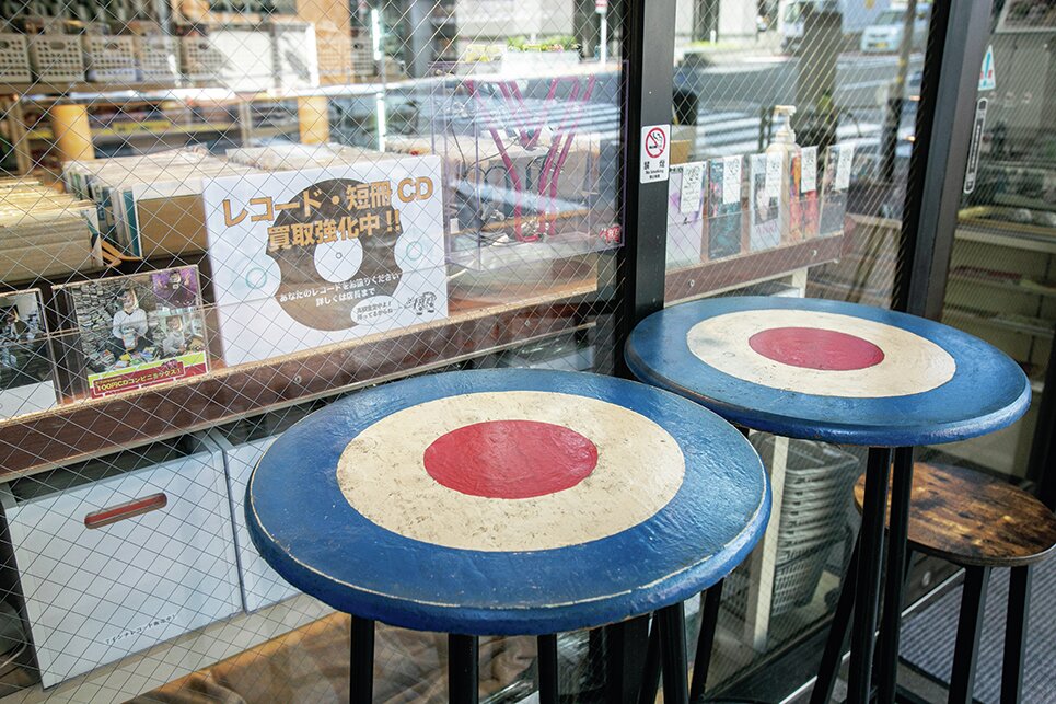 ターゲットマークを模したテーブル席に「レコード買取中」の文字。しつこいですが、コンビニです。
