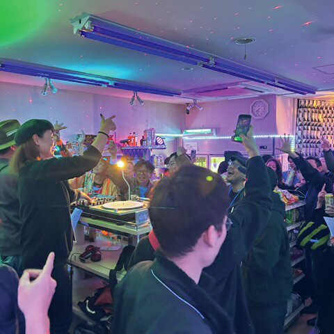 かつて倉庫だった地下は完全にDJスペースに。「ここでもライブをしたり、DJ教室を開催したり」する。ただモノを買うのではなく、集い、楽しみ、体感するコンビニなのだ。