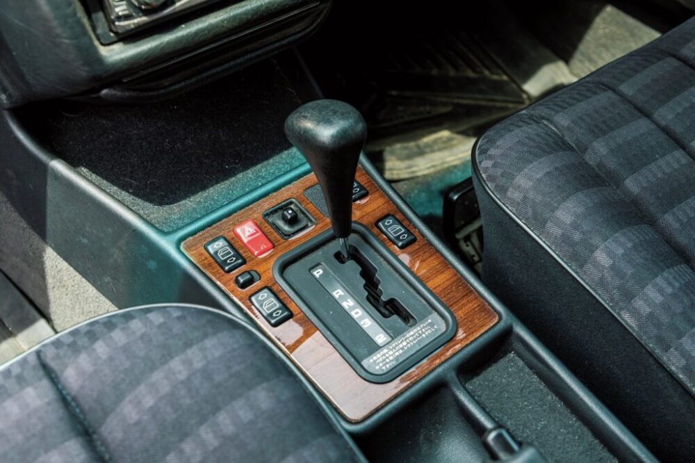リアルウッドが使用されたシフト周辺にはパワーウインドーやハザードなどのスイッチも配置。この時代のギザギザのシフトゲートに憧れた人も多いはず。