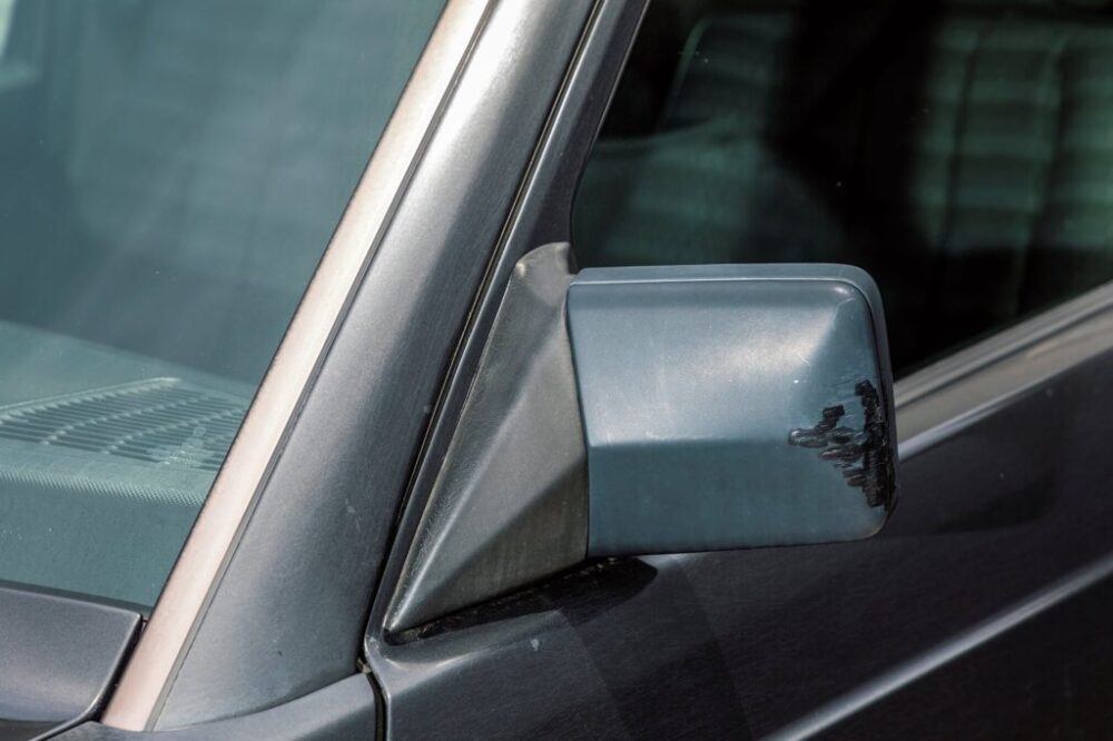 この時代のメルセデスベンツの助手席側のミラーは、運転席よりも幅が狭い。代わりに折り畳まなくても車幅からあまり飛び出さないのが特徴。
