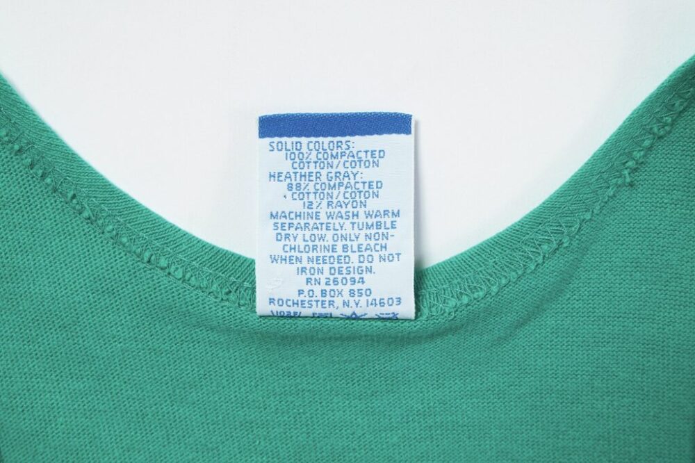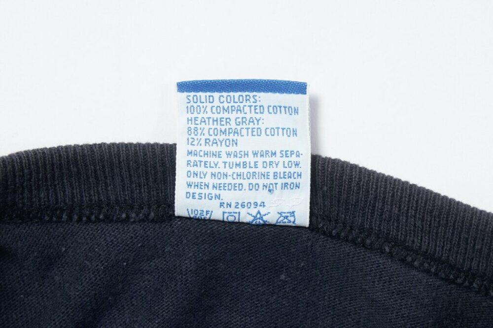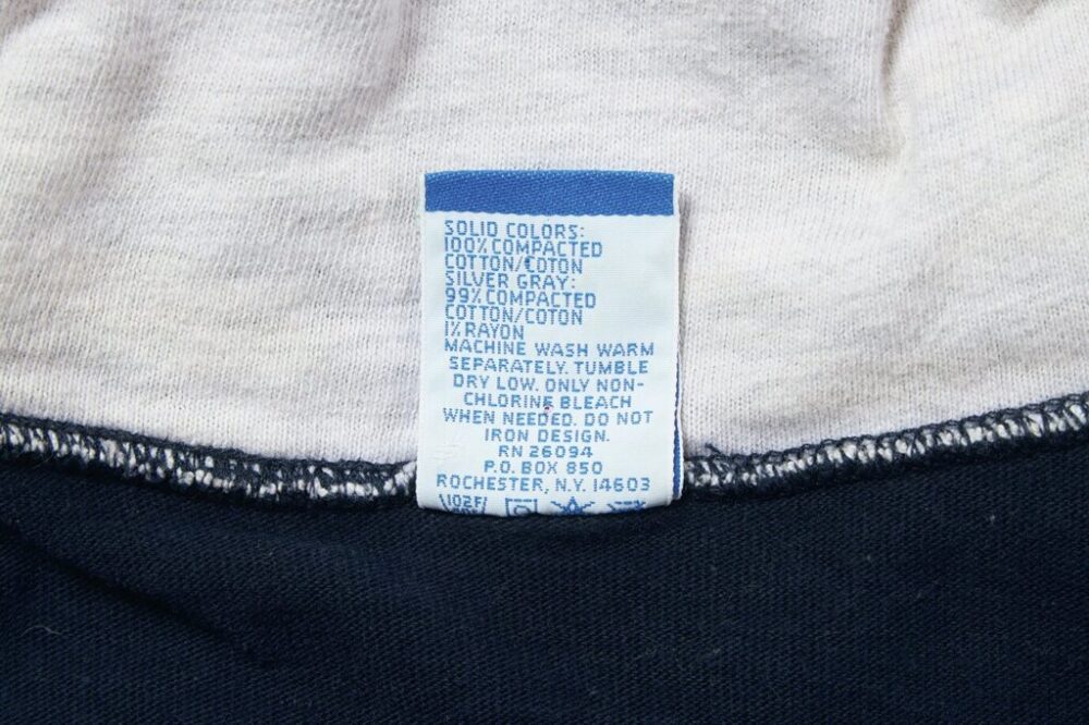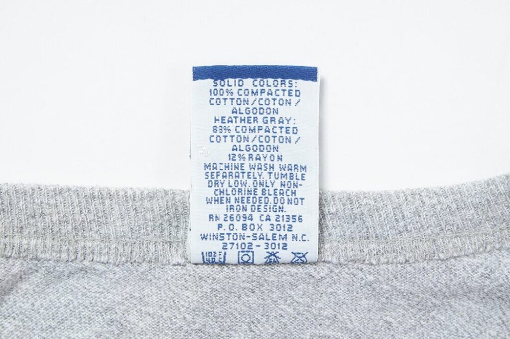 文字色やブランドロゴ下のベース色が青から紺に変更され、ケア表記部分も1段から2段に増えている。裏面の所在地はすべてノースカロライナ表記となる。