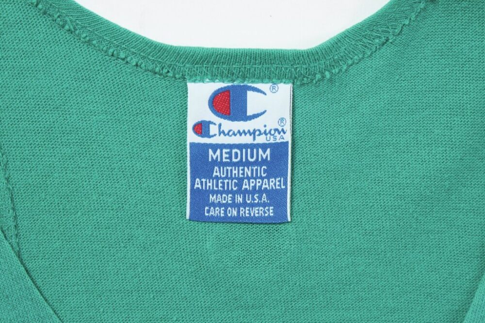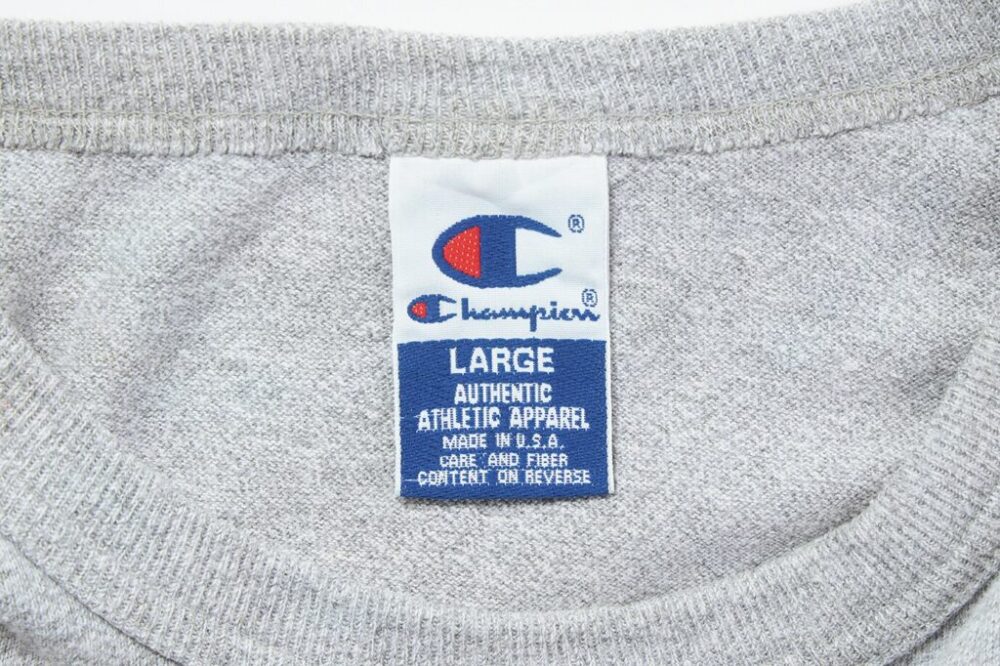 前述の目付き白青タグと同デザインだが、Champion右下のUSA表記が無いタイプ。どちらも同時期に使用されていたため、アイテムによる差は見られない。