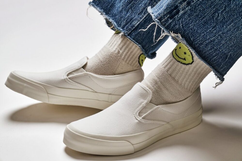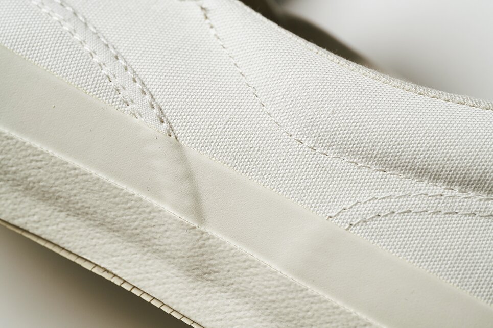 そんな自分にとって、今回紹介する一足はドンズバでした。ナローな木型を使ってて、厚めのソールでバルカナイズド製法によるスリッポン。このスリッポン(Slip-On)と呼ばれるシューレースのないスニーカーは、1970年代にアメリカ西海岸で誕生して人気を博しましたが、今回のモデルは「1940年代にスリッポンのスニーカーがあったなら」という仮定で作られているのが最大の魅力。