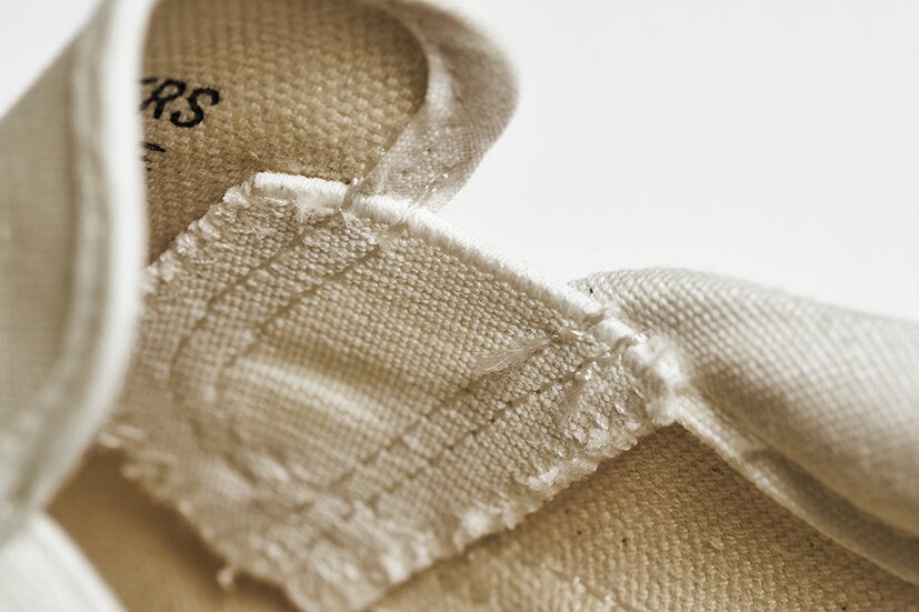 7㎜厚のクッションインソールによって抜群の履き心地を実現。アッパーにはコットン100%キャンバス素材を使用する。