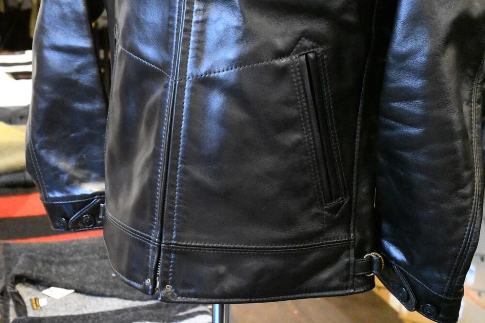 職人自らが「目的の一枚の為に最適」とピックした原皮を使用し、コアスパンの太番手の糸で縫製をすることによりvintageと見間違うような雰囲気をだし、非常に高い技術を駆使しながら製作していく。当時のアメリカの表情を日本の職人最高峰の技術で表現する、決して他に類を見ないクオリティーと存在感だ。