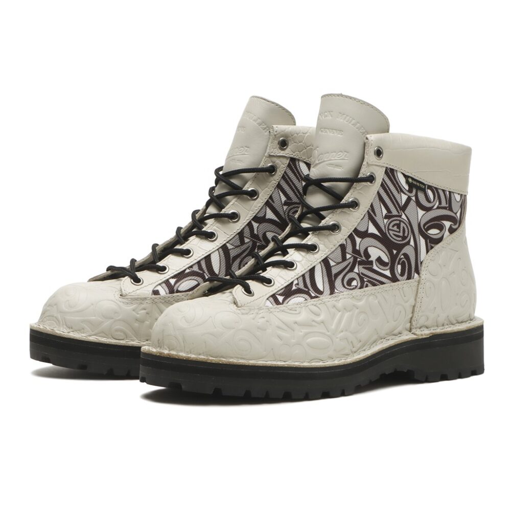 第2弾のモデルは、第1弾に引き続き「DANNER FIELD」をベースに採用。レザーアッパーには、FRANCK MULLERの象徴であるビザン数字をモチーフとした立体的な型押し加工を施し、視覚的インパクトと芸術性を両立させた。