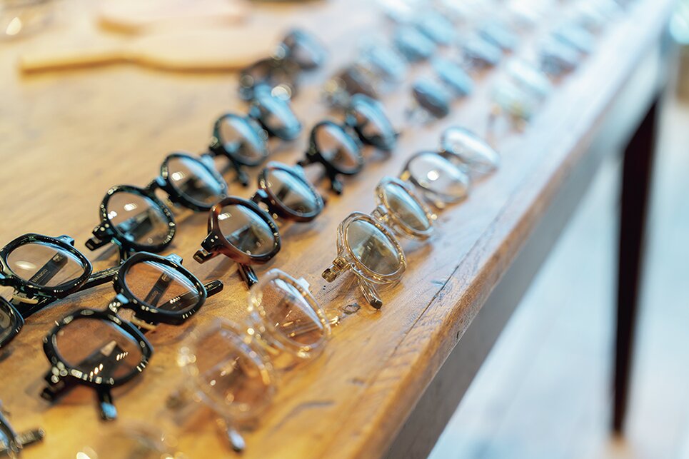 アメカジ定番のクラシックモデルは言わずもがな、トレンドになっているメタルフレームやダブルブリッジのデザインもしっかりと抑えており、さらにレンズのカスタムメニューも豊富で、万全の体制である。