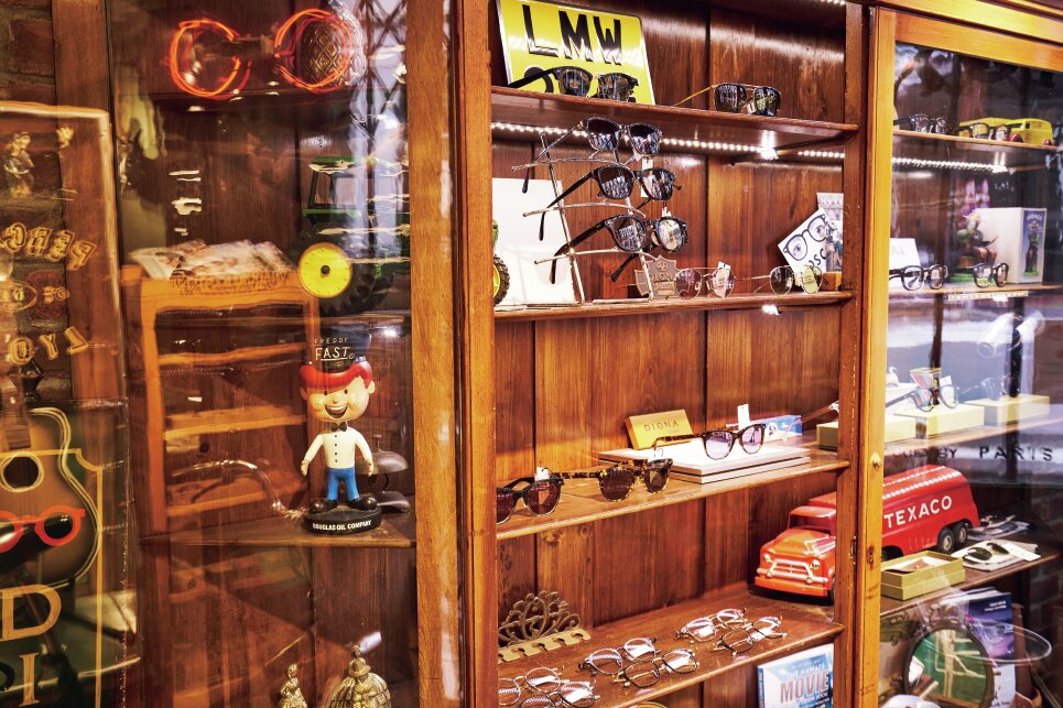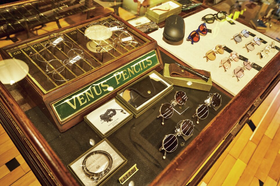懐かしさと新しさが共存するフロアで、ただ眼鏡を選ぶだけではない、豊かな時間が過ごせるのも魅力だ。取り扱うフレームはすべて鯖江製。クラシックをベースにしながら、現代の感性にも響くデザインが多く揃う。眼鏡好きはもちろん、普段はあまり眼鏡を意識しない人でも、ふと惹かれる。そんな一本に出会える期待を自然と抱かせてくれる。