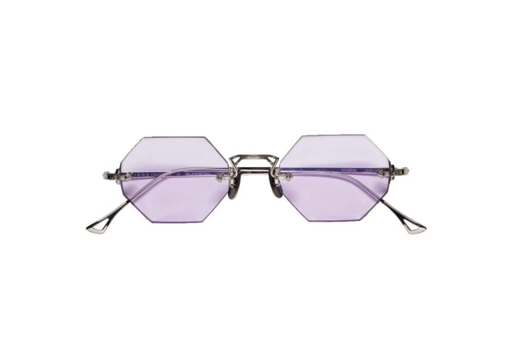 ’30sのアメリカンヴィンテージに見られるリムレスフレームをオマージュ。細部までこだわった鯖江製のチタンフレームに、3mm厚の特注カラーレンズをセットした。5万1700円