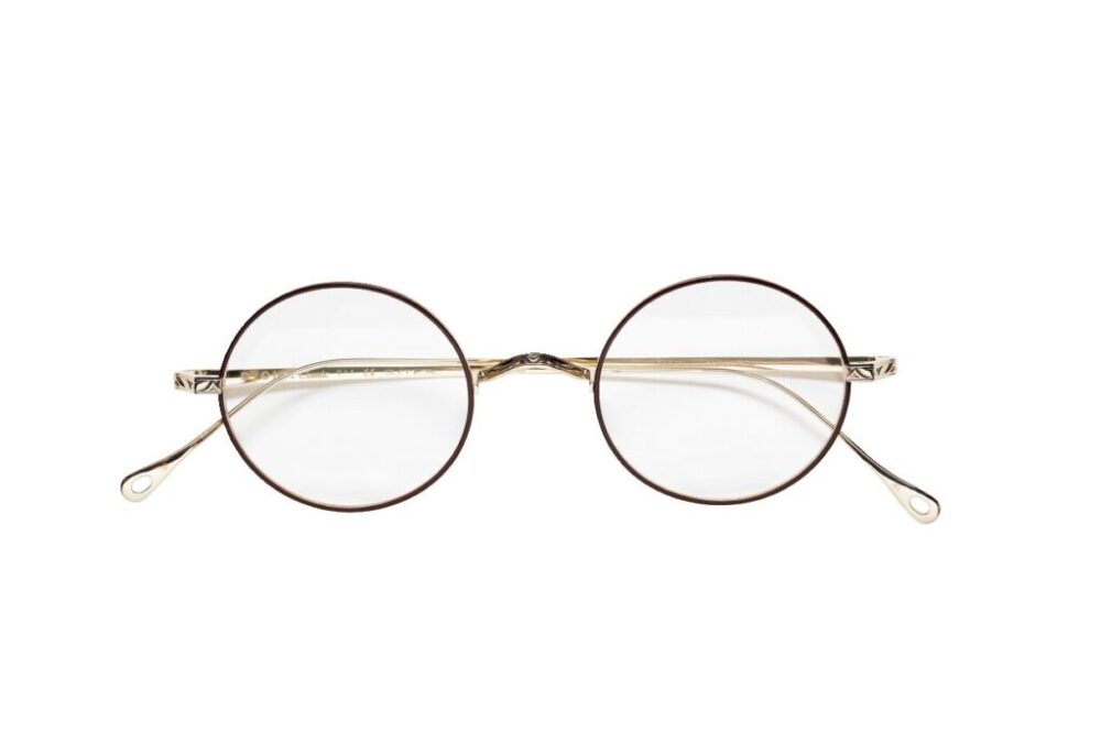 スタンダードなウェリントン型ながらエレガントで美しい佇まいを見せる一本。10Kで仕上げられたカシメや角立てされたフレームなど、細部もこだわり抜かれている。4万6200円