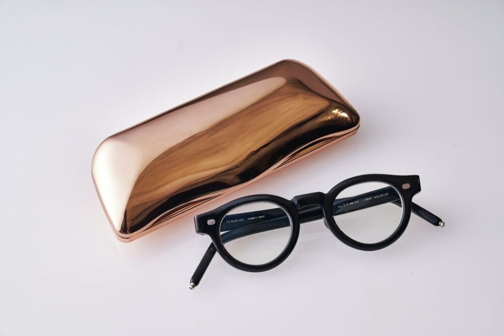 さまざまなメガネを試してきた高野だが、メガネ愛用者としてひとつ最高級のものを掛けたいとの思いから選んだ「no.3 Ⅲ」。ツァイスレンズを入れたお気に入りの1本。付属の赤銅製ケースも良し。