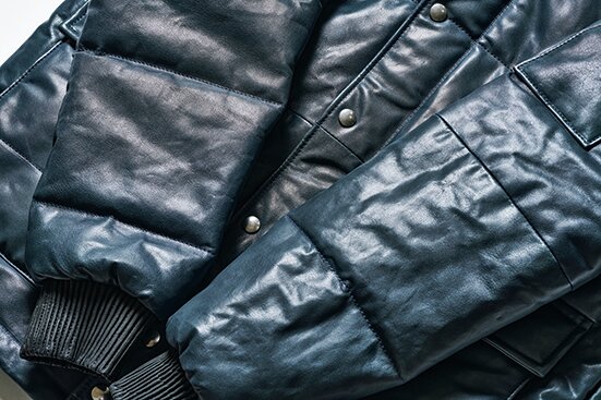 1970年代アメリカのレーシングシーンで着用されていた中綿入りのジャケットを、TRUE VINTAGEがヴィンテージとして所有していた。そのモデルを、革で再構築するという前代未聞のプロジェクトだ。希少な高級オイルドキップレザーで中綿を包み込む製法は、一般的なレザージャケットとはまったく異なる構造で、機能とデザインの両面から見直した。ヴィンテージの枠を超え、この世に存在しなかった一着として誕生したのだ。33万円