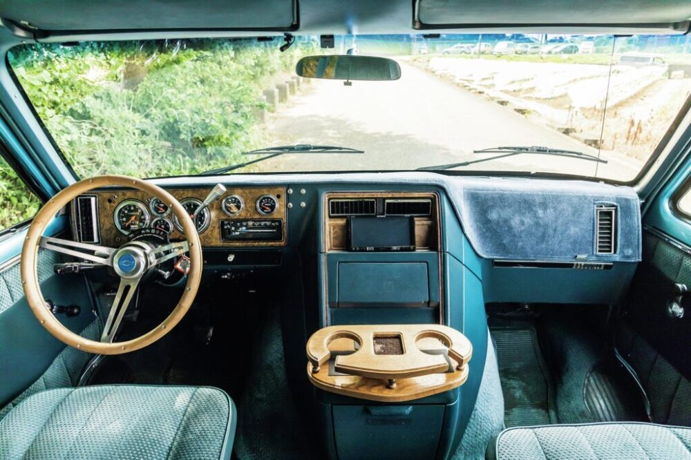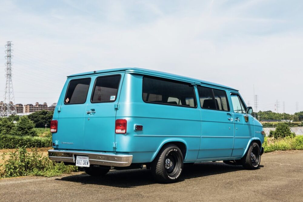 今回紹介するのは、最近通りの反対側に移転した横浜ディーズクルーで販売中の`85年式のG20で、ビュービルというサブネームを持つパッセンジャーワゴンだ。`85年式は3代目にあたり、シボレーのC/Kピックアップ同様に、フロントグリルは丸目二灯からスタートし、最終的に角目四灯ヘッドライトとなる。多くの人が「シェビーバン」と言って思い浮かべる形状の車両だ。TVドラマ「特攻野郎Aチーム」で活躍したといえばピンと来る人も多いかもしれない。